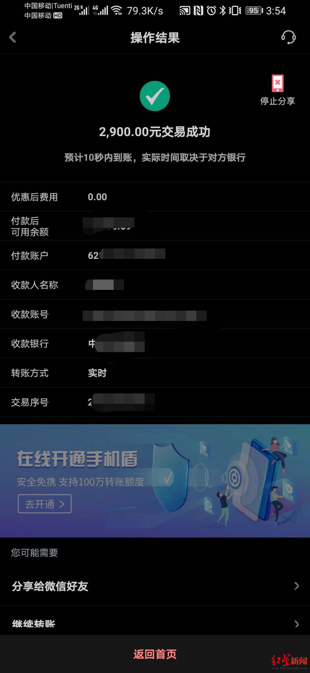 “在最后转钱时,没有出现对方提到的A、B选项。我觉得不对。”小王以找家属要钱为由,希望拖延时间方便警方破案。10月5日,小王向派出所报案。记者从警方了解到:目前警方已受理,案件正在进一步调查中。
