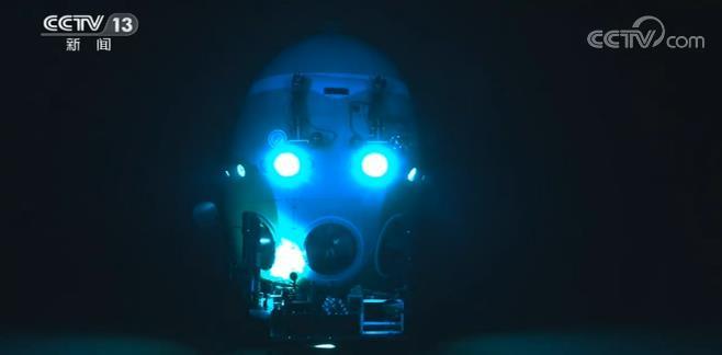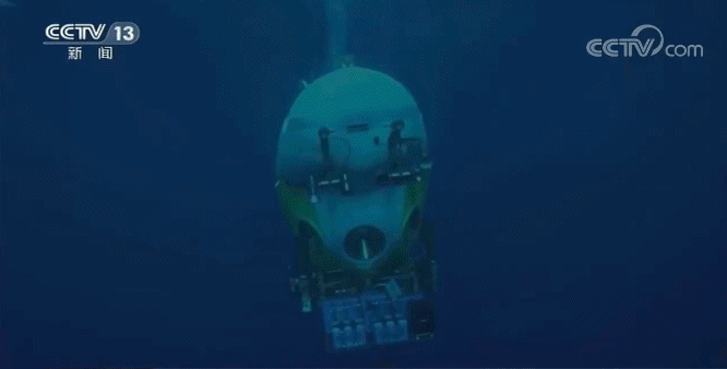 总台央视记者 杨理天:大家可以看到现在潜水器的整个轮廓已经全部都出来了。好,现在又开了一盏灯,太漂亮了这是历史性的一刻。