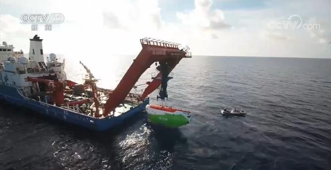 经过几小时漫长归程,“奋斗者”号浮出海面,桔红色涂装和GPS信号发射器让母船迅速找到了它。