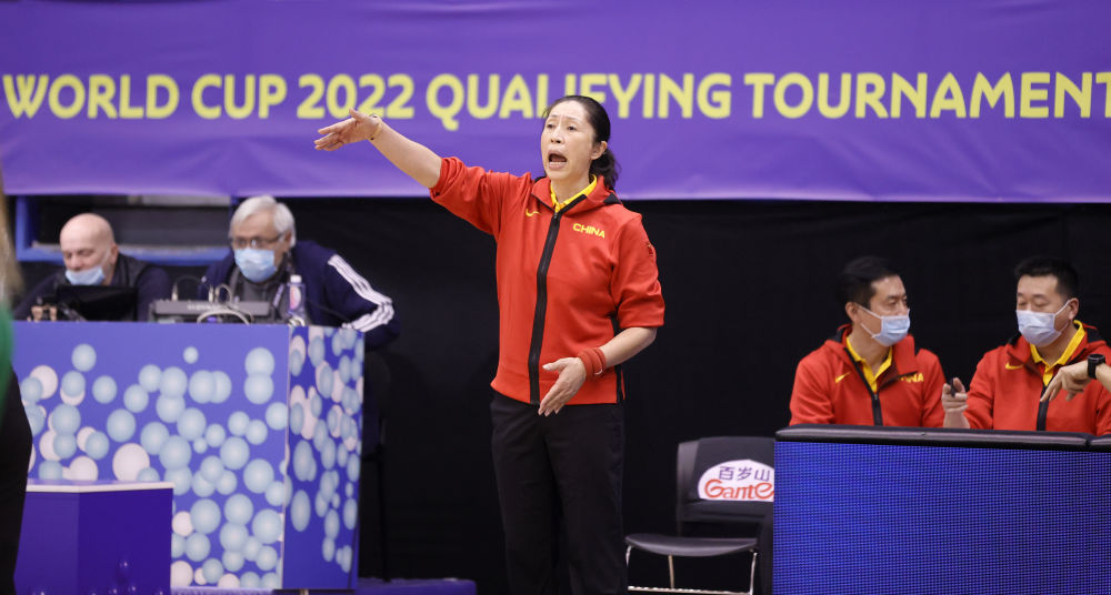 ↑2月10日,中国队代理主教练郑薇在场边指导。新华社发(普雷德拉格·米洛萨夫列维奇摄)