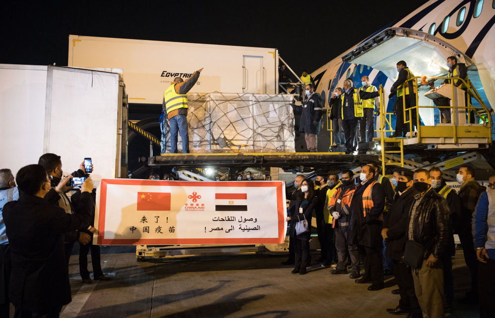 2021年2月23日,中国援助埃及的首批新冠疫苗抵达埃及开罗国际机场。新华社记者邬惠我摄