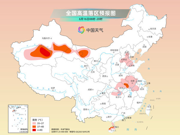 高温短暂缓和!今天(6月16日),我国中东部地区高温范围缩减、强度也有所减弱。明后天,北方高温再度发力,河北、河南、山东等地将再现大范围、集中性的高温天气,河北南部等地最高气温将达到40℃及以上,公众请注意防暑。降水方面,今明天,江南、华南等地部分地区仍有大到暴雨,局地大暴雨,需注意防范连续降雨可能引发的次生灾害。