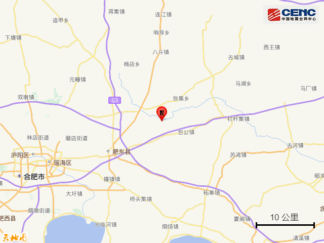 速报参数:据中国地震台网正式测定,10月1日16时34分在安徽合肥市肥东县发生3.3级地震,震源深度10公里,震中位于北纬31.97度,东经117.61度。