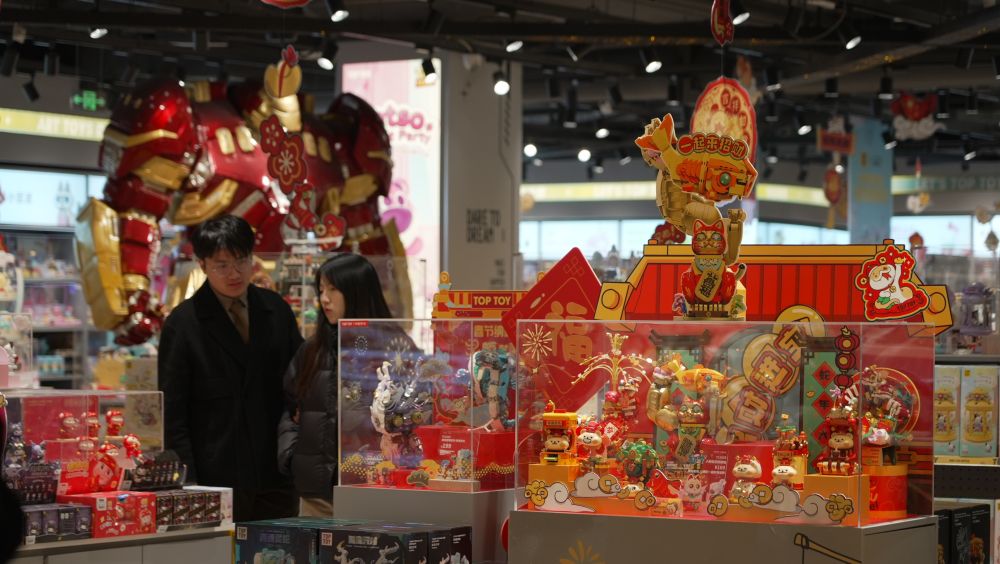 “为了迎合过年的气氛,店内早早就装饰一新,新春‘气氛组’被放置在进店最显眼的位置。”南昌一潮玩店店长黄俊杰说,“近年来,潮玩市场刮起‘中国风’,中国优秀传统文化元素早已深植于产品设计之中。尤其是特定节庆,比如春节前这些国潮文创产品十分受欢迎。”