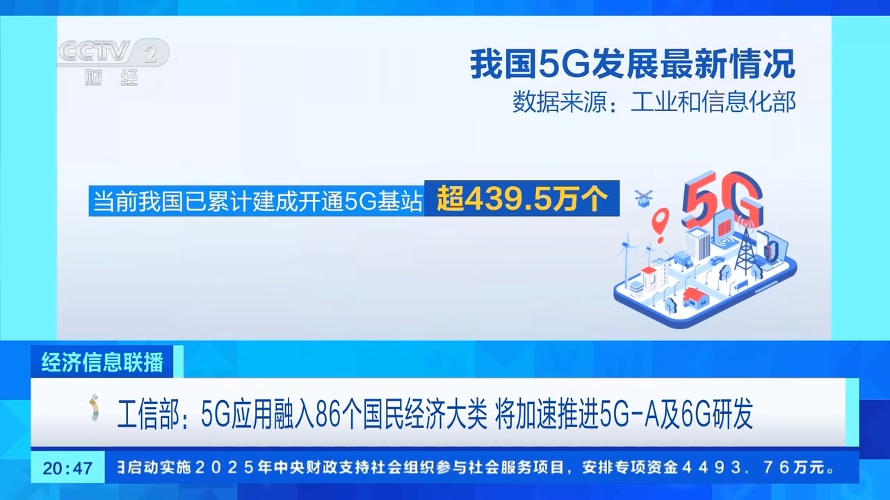 最新数据显示,当前我国已累计建成开通5G基站超439.5万个,5G应用融入97个国民经济大类中的86个。近期,速率更高、性能增强的5G-A网络,也在各类生产生活场景逐步试点落地。最近,在内蒙古呼伦贝尔,全球首个5G-A露天矿就迎来了百台无人驾驶电动矿卡的集中投运。通过升级后的5G-A的网络,这些无人矿卡上的摄像头可以实现8K视频的快速回传。工作人员坐在室内的中控室里,就能完成24小时的不间断作业。