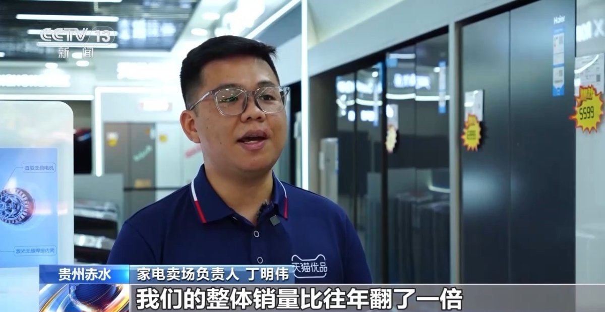 家电卖场负责人丁明伟:有了“国补”政策之后,我们的整体销量比往年翻了一倍。大尺寸的电视、大尺寸的嵌入式冰箱,以及洗烘套装、全屋净水这一类能够提升生活品质的家电,整体的销量初步统计提升了20%左右。