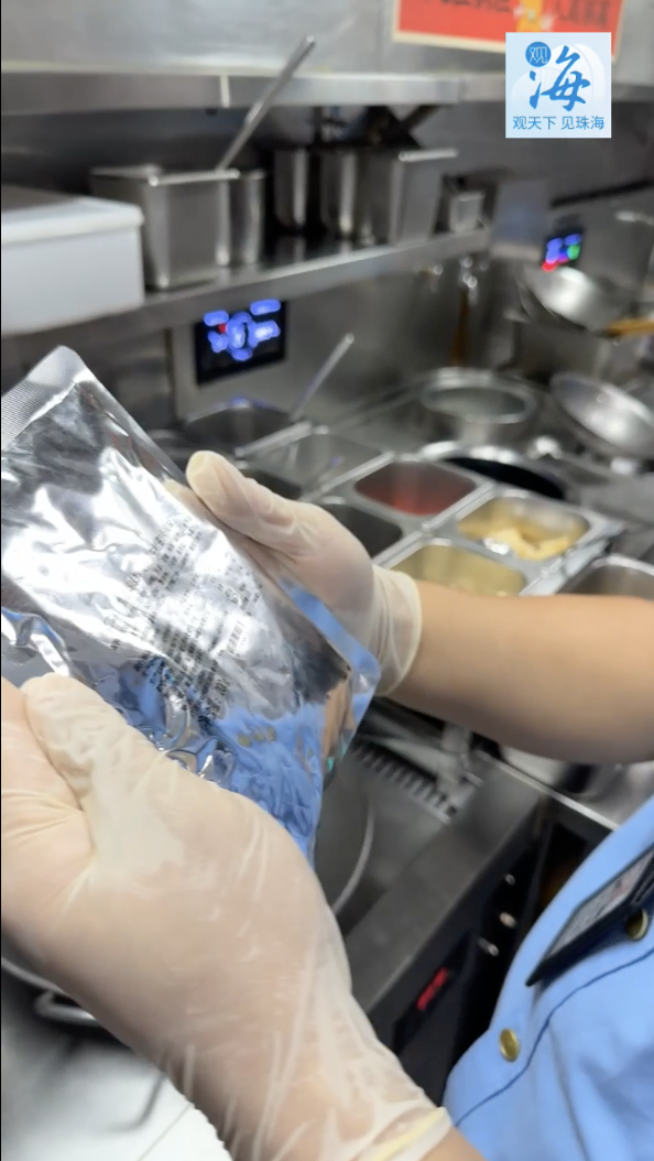 8月11日上午,市市场监管局组织的“查餐厅”执法行动,抽检斗门招商花园城商圈两家连锁品牌餐饮门店,在“珠海特区报”视频号等直播间网友的见证下,食材样品被送检。