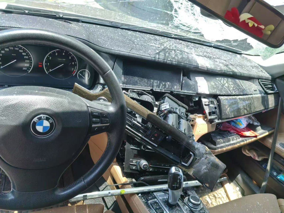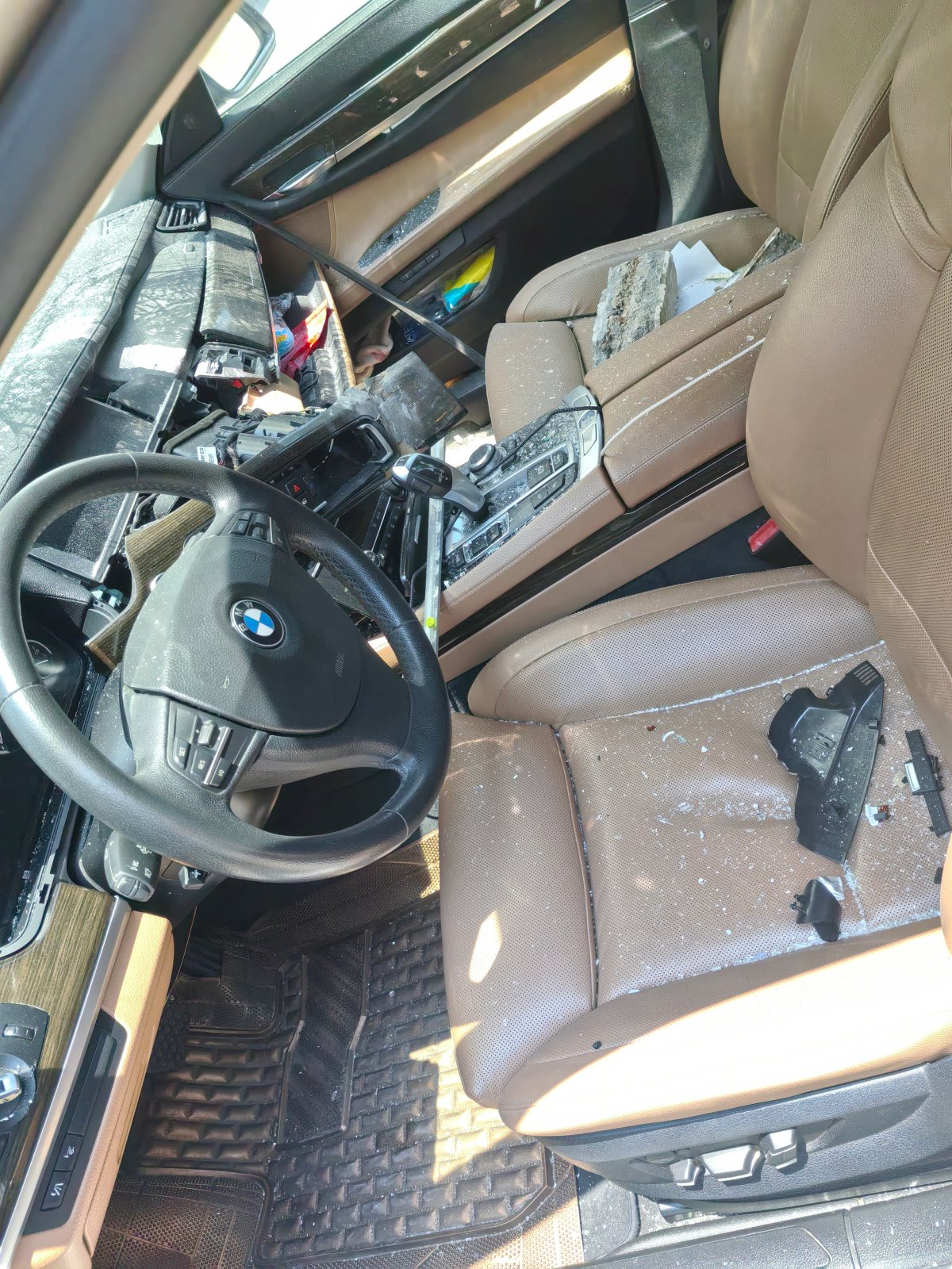 唐先生告诉记者,7月26日早上7点,他接到小区保安电话后就立即下楼查看车辆情况。当时,车辆的前挡风玻璃被砸碎,车辆内部的中控台、空调面板、扶手马鞍等内饰都被砸烂,停在唐先生隔壁的车辆也未能幸免。