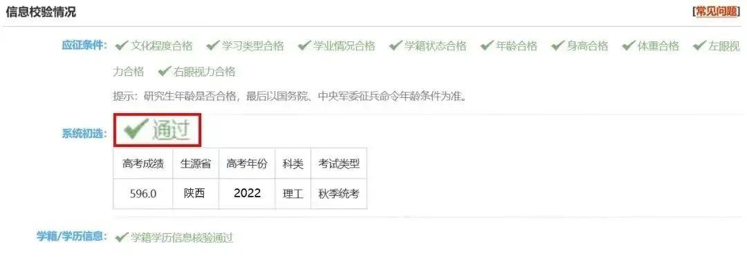 按照应征报名青年高考相对分数排序,择优录取,排名在6倍征集任务数后的应征者自动被系统判定为审核不通过。