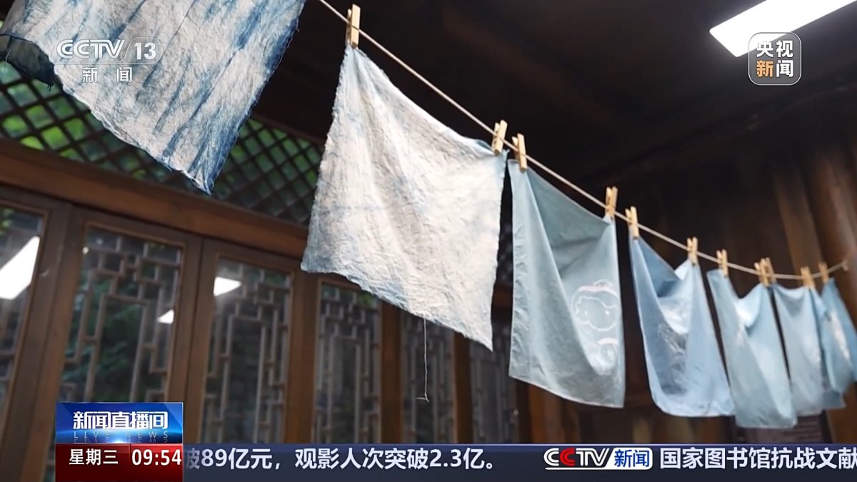 在染坊,游客们还可以体验扎染项目。将布料折叠、翻卷、捆扎,形成特定形状后放入染缸染色。经过漂洗、晾干,一幅独一无二的作品就诞生了。