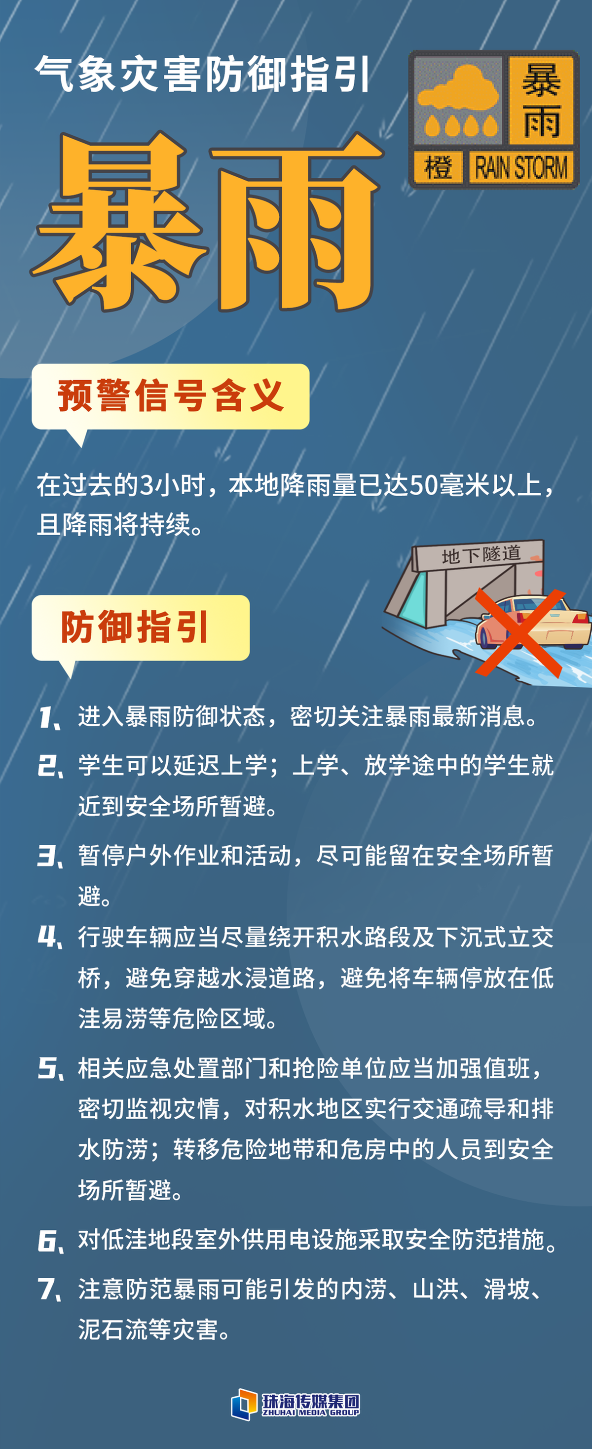 珠海市气象台8月14日17时50分发布信息,合作区暴雨预警信号降级为橙色。