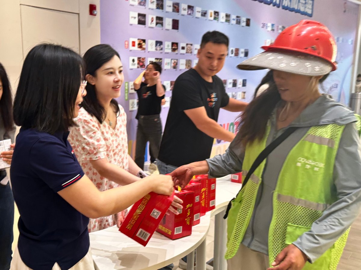 活动当天,在创新方党群驿站早早就看到志愿者们的身影,他们分工明确、行动迅速,有条不紊地完成场地布置与物资摆放工作。在现场有序组织下,大家依次排队,顺利领到了包含降暑物资与饮品的清凉礼包。接过承载爱心的礼包,劳动者们脸上露出真切的笑容,纷纷向工作人员和志愿者表达感谢。