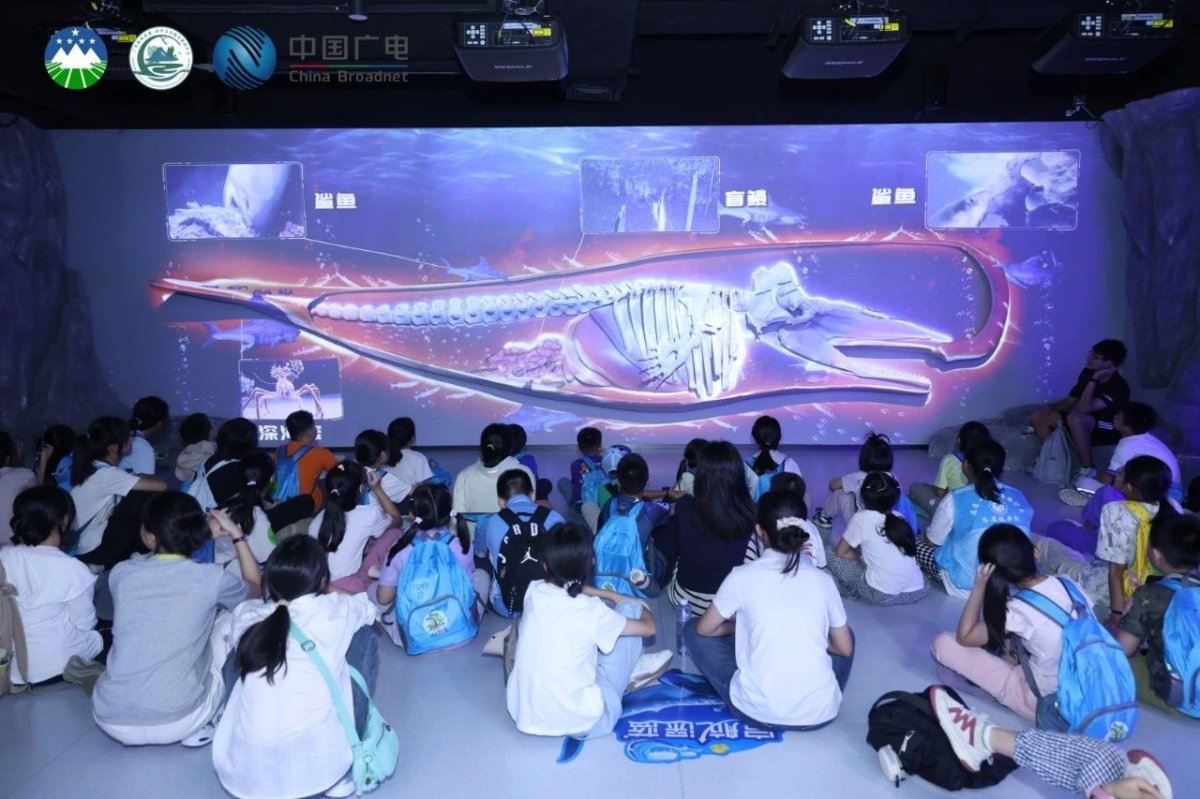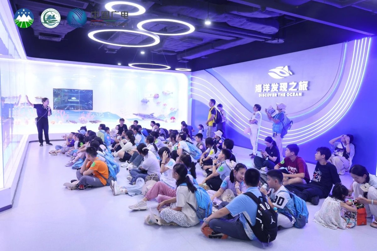 参观南方海洋科学与工程广东省实验室,孩子们通过卫星、无人机、雷达、浮标等立体观测模型,直观认识了海洋科学前沿装备与技术。展区以多媒体和模拟场景生动呈现深海环境的奥秘与生命韧性,光影交织下的“鲸落”演绎令人赞叹。此外,“珠海琴”智能养殖平台、中华白海豚保护实践以及海洋实时观测系统等展示,多维度呈现出珠海在海洋经济、生态治理和大湾区海洋安全支撑方面的创新成果。