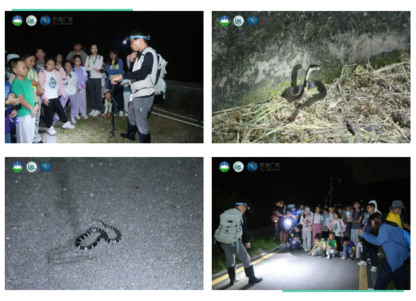 夜幕下的淇澳红树林,手电筒的光束照亮了另一个世界。每一个新的发现,都让少年们惊叹不已。途中,更是惊喜邂逅了“眼镜蛇”和“银环蛇”,在专业导师的指导下,小朋友们学习了遇到蛇类时的正确应对方法,上了一堂生动的野外安全课。