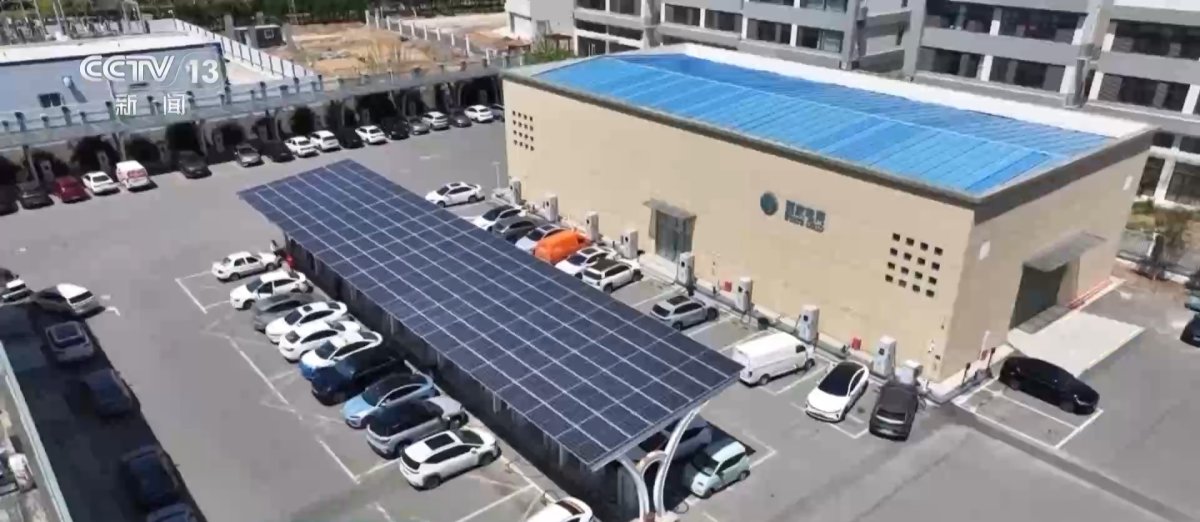 在超级快充站的顶棚上、高速公路边坡、服务区的屋顶上都铺满了光伏板。工作人员介绍,这些光伏每年可以发出115万度的绿电,除了可以供应超级充电站的用能需求,还能满足整个服务区的日常用电需求。