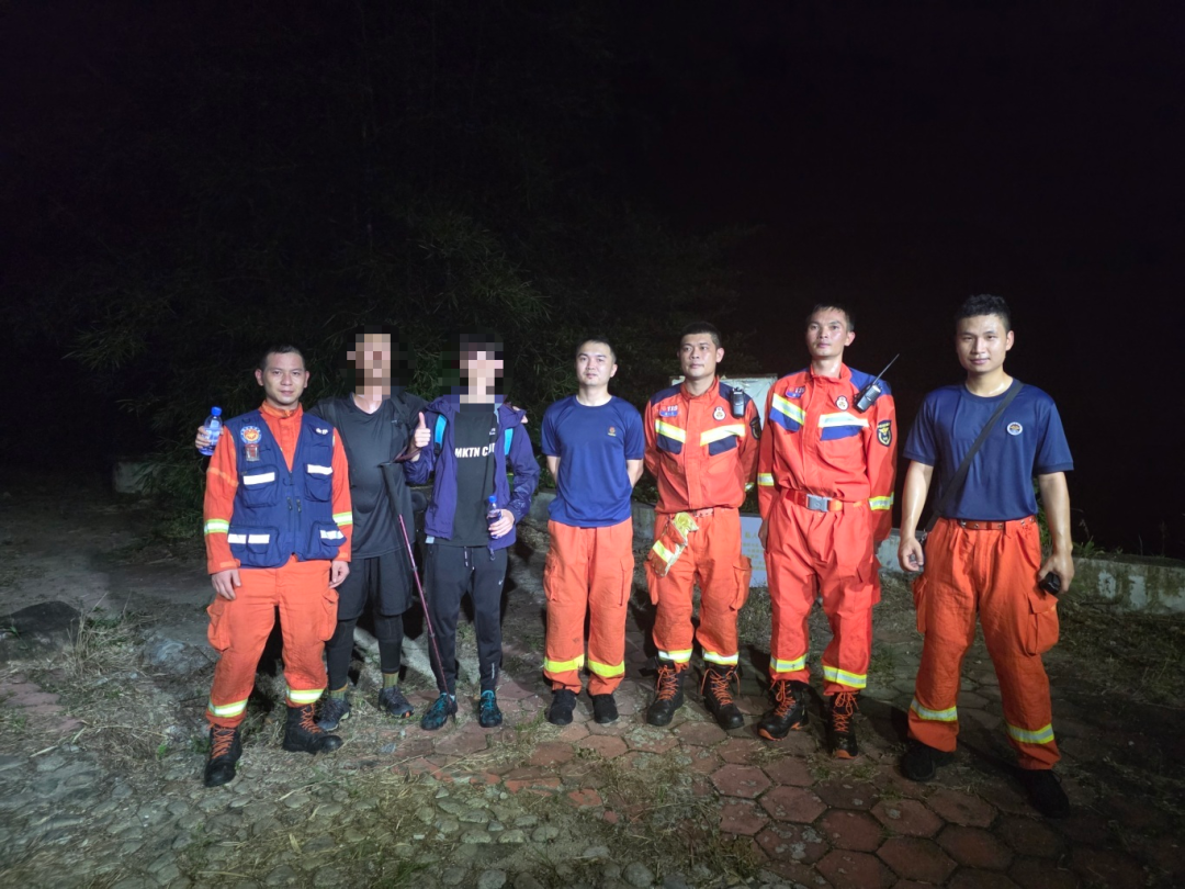 经过一个多小时的紧张搜寻,救援人员终于在一处溪谷附近发现两名被困者。两人虽体力略有透支但身体状况良好,救援人员立即提供了饮用水和能量补给。短暂休整后,消防员采取“一对一”护送方式,小心翼翼地引导两人沿安全路线顺利抵达山脚。