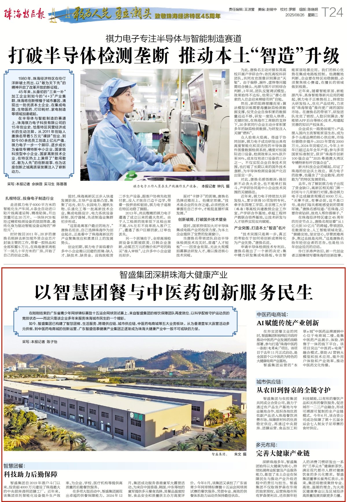 智盛集团与农控集团共同成立合资公司,致力于通过农产品生产基地与专业基地合作,组织各地优质农副产品进入珠海餐饮消费市场,保障原材料的优质稳定供应,再通过中央厨房、团膳运营、食品加工和科技赋能,以有形的餐饮产品和无形的餐饮服务,促进城市一二三产业融合,形成可溯源可复制的全产业链模式。今年6月,该合资公司成功保障了第十五届全运会七人制女子足球赛的食材供应。