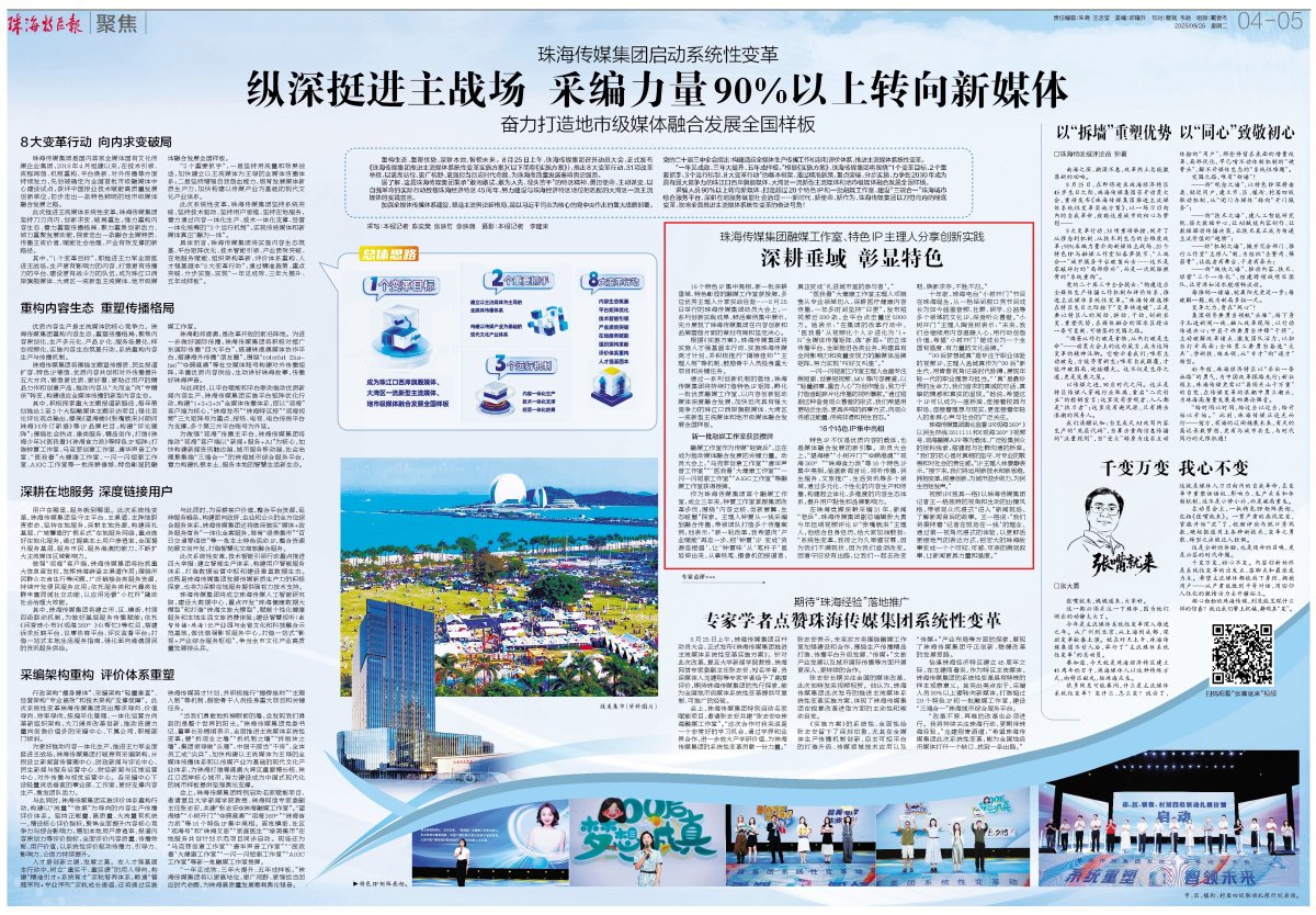 通过一系列创新机制的落地,珠海传媒集团将持续打造特色IP矩阵,孵化一批优质融媒工作室,以内容创新驱动媒体深度融合发展,加快迈向具有强大竞争力的珠江口西岸旗舰媒体、大湾区一流新型主流媒体和地市级媒体融合发展全国样板。