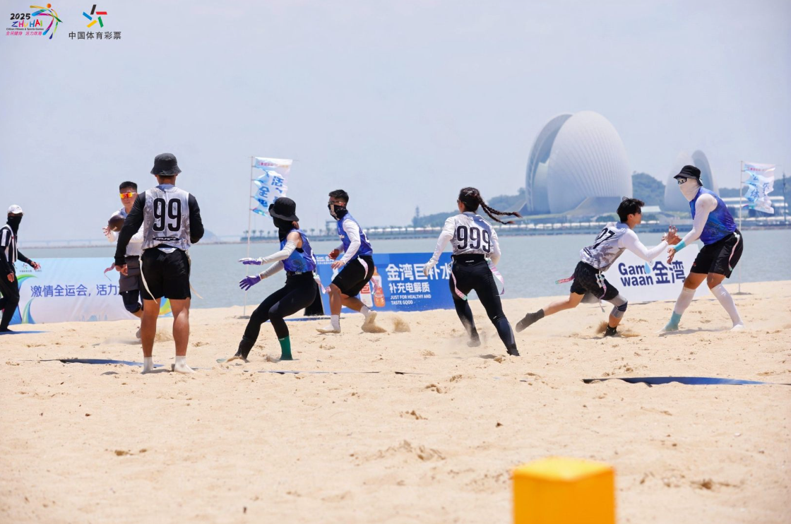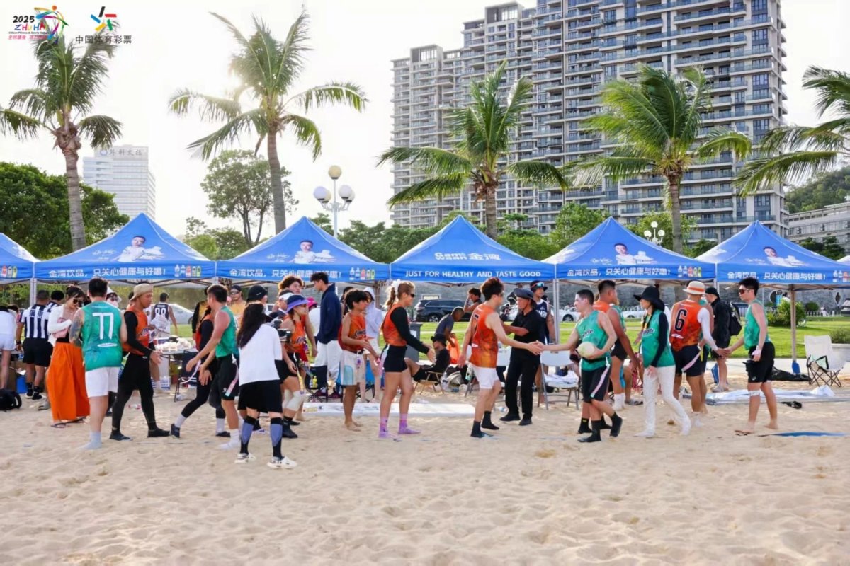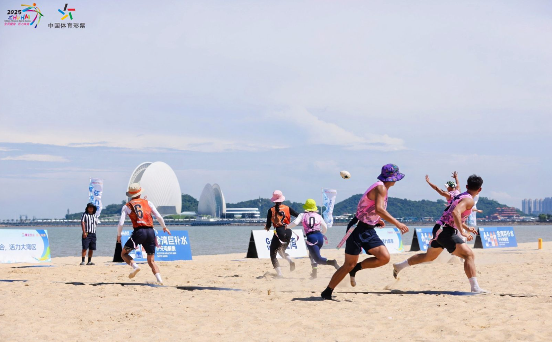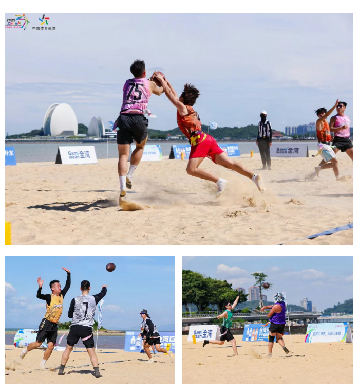 此次沙滩赛场相较于传统场地,对运动员的平衡感、爆发力更具要求。比赛现场,8支涵盖珠海本地运动爱好者及港澳人士的参赛队伍在赛场上奔跑,通过精准传接、灵活卡位及战术配合,引来现场观众阵阵欢呼。