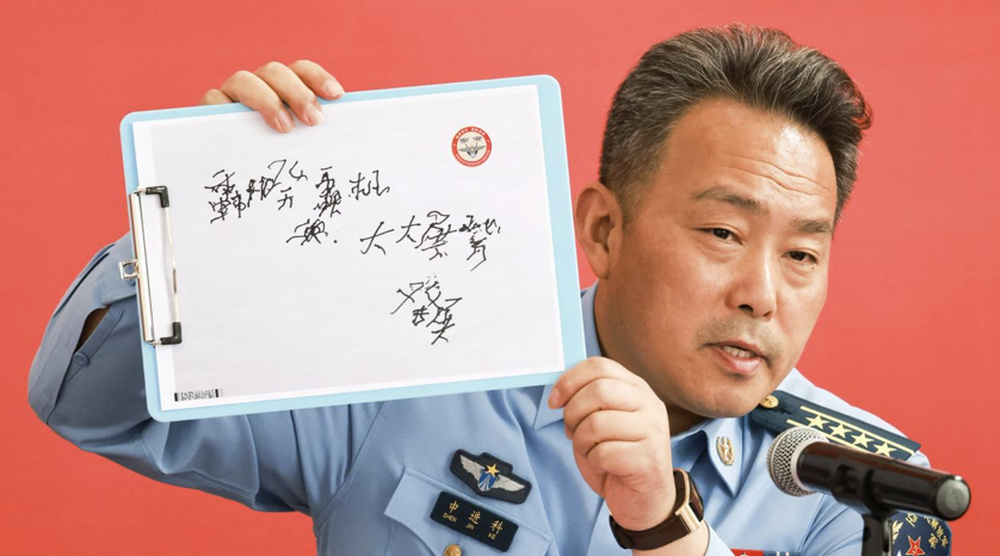 红色歼-20,赤诚中国心。那天,执行护航任务的歼-20机长和歼-20僚机飞行员,在一个象征着歼-20的红色纸飞机上签名。后来,歼-20总设计师和歼-20首飞试飞员也在飞机上签名留念。我一直保留着、珍藏着这个红色纸飞机。