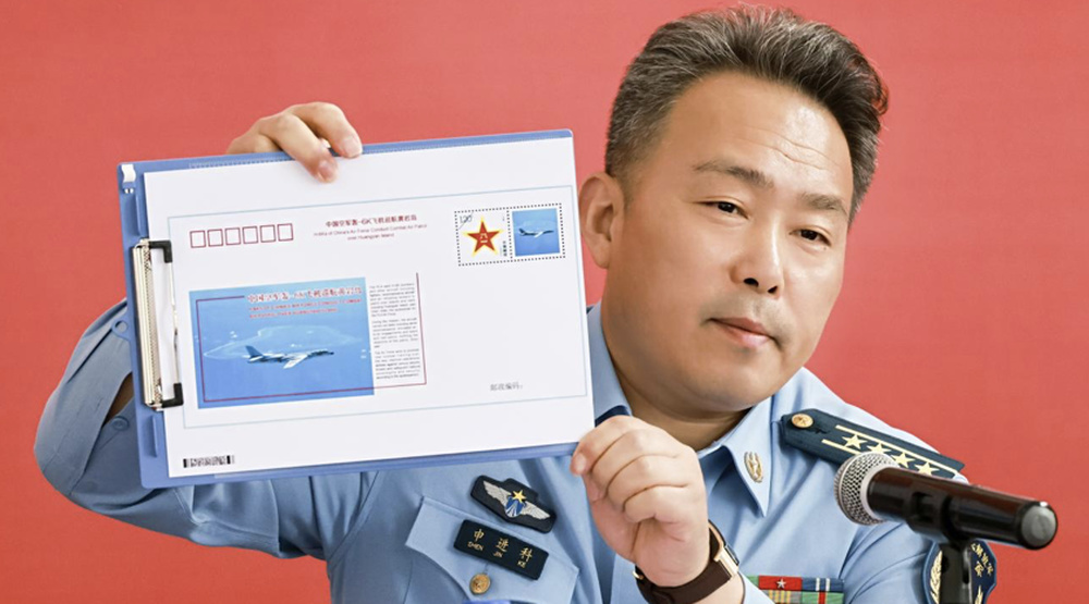 “东南西北中,奋飞歼-20。中国第五代战机歼-20,已经遍布‘东南西北中’,列装越来越多、飞得越来越远,在新时代练兵备战中日益发挥重要作用。歼-20振翅东海、南海和台海的壮美航迹,画出了一个强国强军的同心圆。在砺兵台海中,歼-20和歼-16、轰-6K、运油-20等国产新型战机振翅高飞,提升了捍卫国家主权和领土完整的能力。”