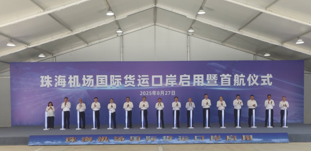 在珠海经济特区建立45周年之际,8月27日,珠海机场国际货运口岸启用暨首航仪式举行。