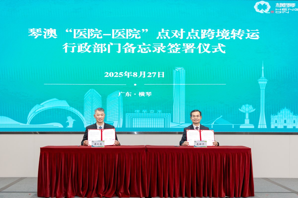 8月27日,横琴粤澳深度合作区与澳门特别行政区在横琴市民服务中心联合举行琴澳“医院-医院”点对点跨境转运行政部门合作备忘录签署暨定点医院授牌仪式,标志着琴澳两地跨境医疗服务实现医疗机构直联模式,为居民提供更高效、更安全的紧急医疗转运服务。