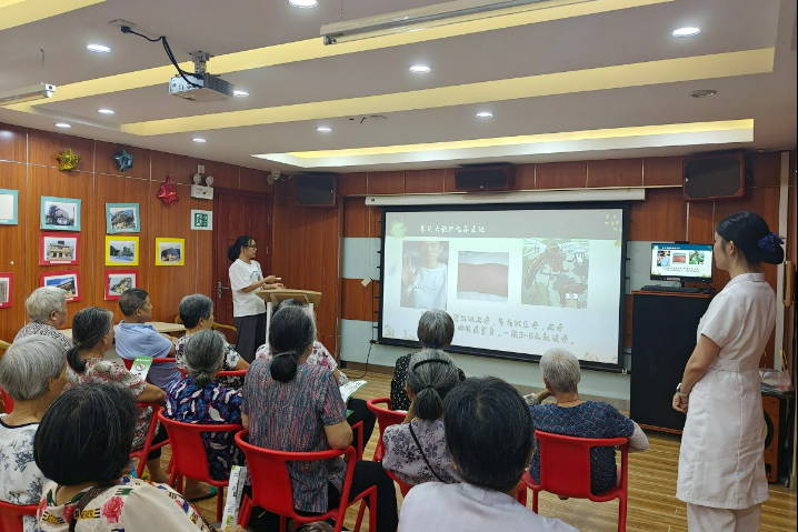 另一边,养老服务站的工作人员也没闲着,一边为老人测血压,一边细致询问日常起居需求。工作人员还向长者详细讲解基孔肯雅热等蚊媒传染病的传播途径与防护方法,协助清理家中积水容器,指导他们“翻盆倒罐”杜绝蚊虫滋生,还赠送了防蚊物资,提醒长者外出时加强个人防护。