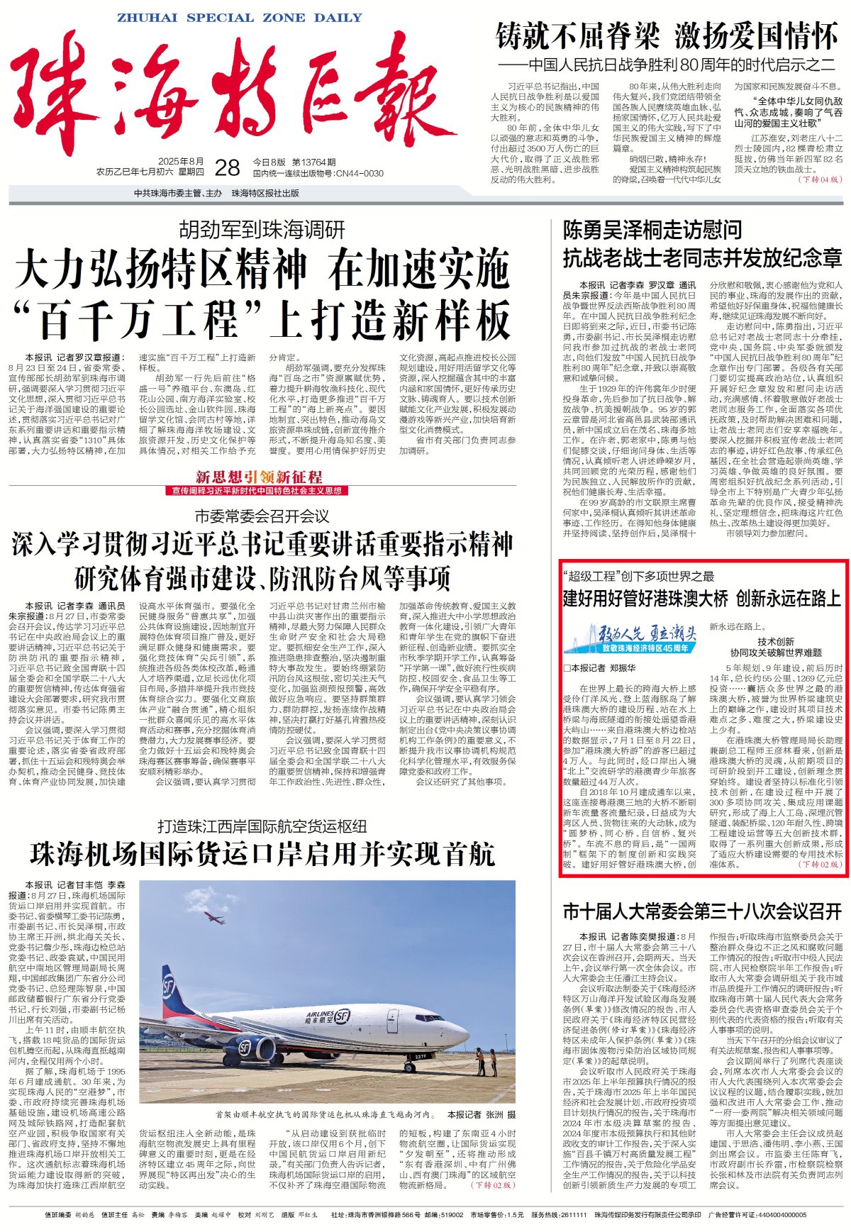 今年3月,港珠澳大桥三地联合工作委员会第三十五次会议在珠海召开。会议强调,大桥三地委各方要继承发扬港珠澳大桥建设者奋斗精神,合力做好大桥各项重点工作,持续提升大桥通行量及通行效能、安全水平、管养能力,始终确保安全、顺畅、舒适、智慧运行,深入打造“圆梦桥、同心桥、自信桥、复兴桥”,促进粤港澳大湾区高水平互联互通和共赢发展。