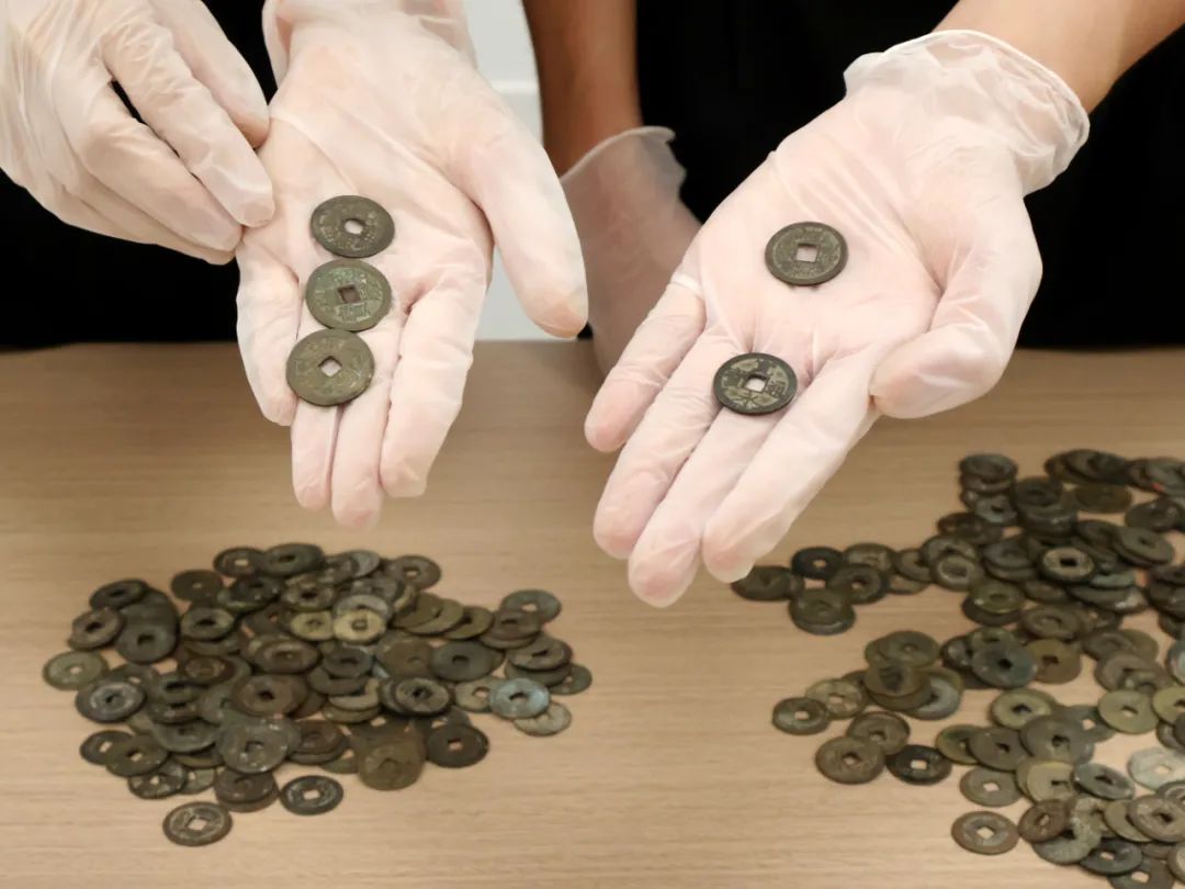 8月6日10时许,中山港海关关员在对出境航班旅客及其行李物品监管过程中,发现1名旅客托运行李机检图像异常。经开箱检查,发现箱内红色塑料袋中装有疑似文物钱币,共638枚。