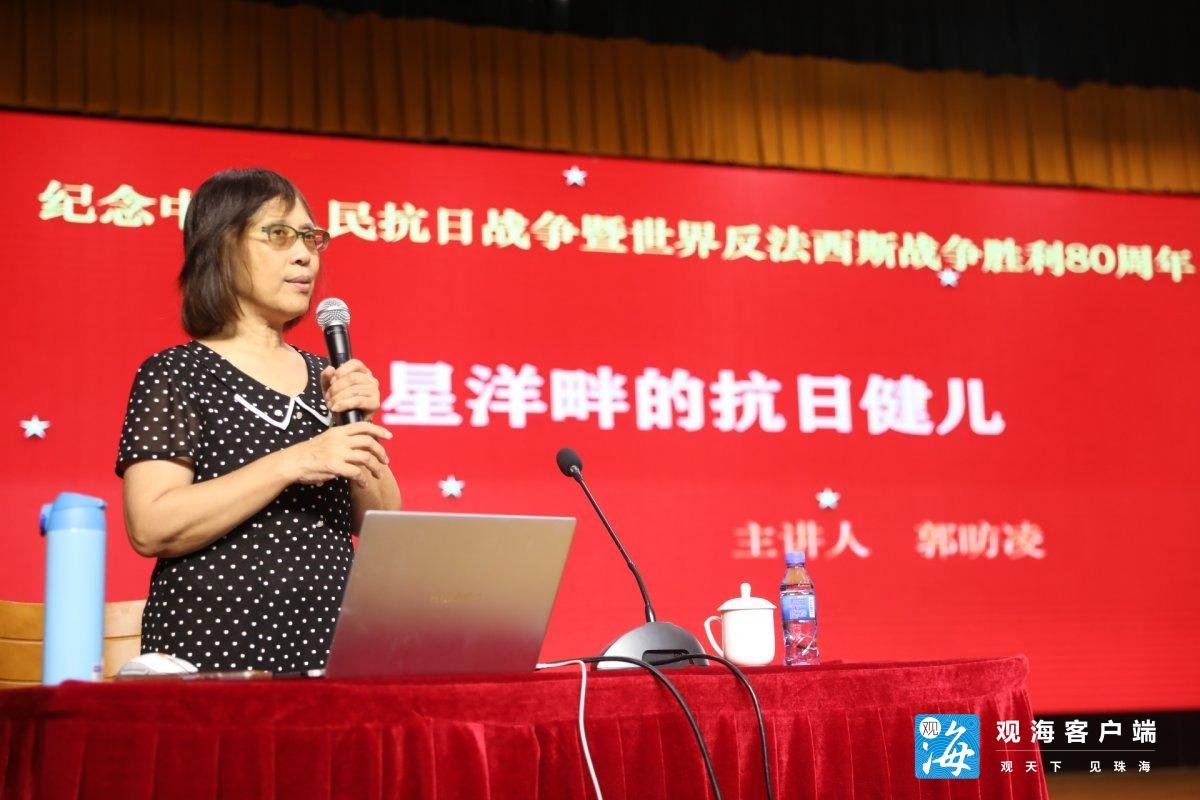郭昉凌以《金星洋畔的抗日健儿》为题,用质朴的语言和详实的史料,生动再现了抗战时期珠海地区军民同仇敌忾、奋勇抗敌的壮阔历程。她深刻阐释了伟大抗战精神的丰富内涵,强调爱国主义是中华民族生生不息的力量源泉,引导观众深刻认识到今日和平繁荣的来之不易,离不开无数平凡英雄的牺牲与奉献。
