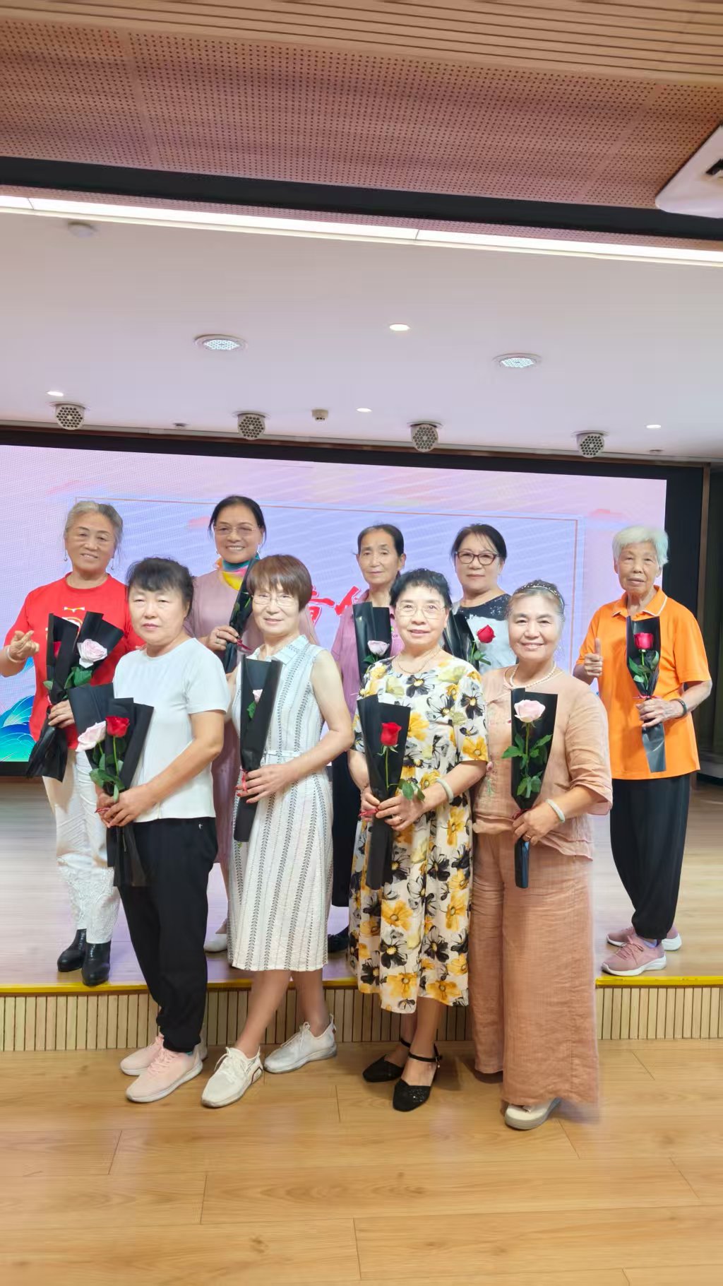 接着,在“花香传情”环节中,长者们互赠玫瑰,分享浪漫爱情故事或横琴生活点滴感想,杨阿姨激动地说:“没想到年老了忽然收到老伴的浪漫告白和玫瑰,弥补了年轻时的遗憾。”《夫妻双双把家还》《红尘情歌》等经典情歌对唱中,熟悉的旋律响起,台上台下长者不约而同牵手合唱,将气氛推向高潮。