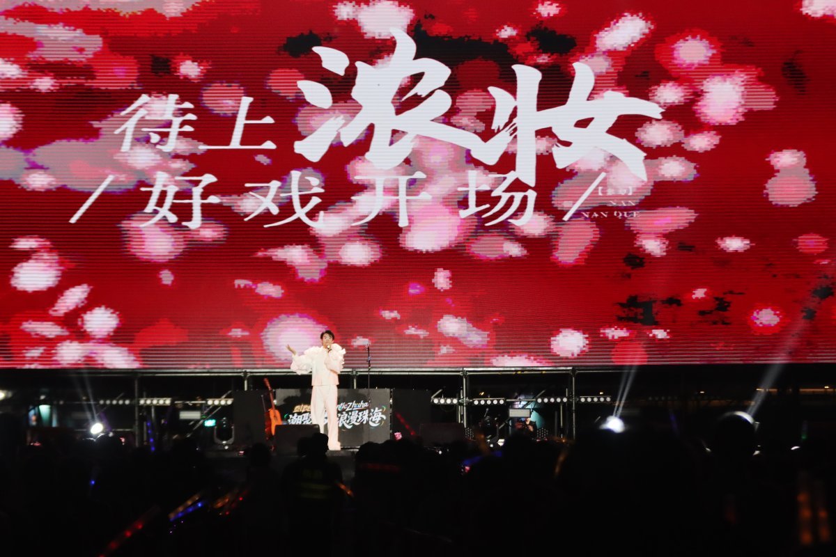 “我之前从来没在海边演出过,站在舞台上吹着海风,感觉特别温馨幸福。”谈及今晚的舞台,祥嘞嘞直言此行更像在度假。为了匹配这座城市的浪漫底色,他特意准备了国风三连唱:七夕限定曲《鸳鸯戏》、原创曲目《戏文说》以及吉他弹唱版《难却》,戏腔与旋律交错,把七夕的情话也唱给海风听。