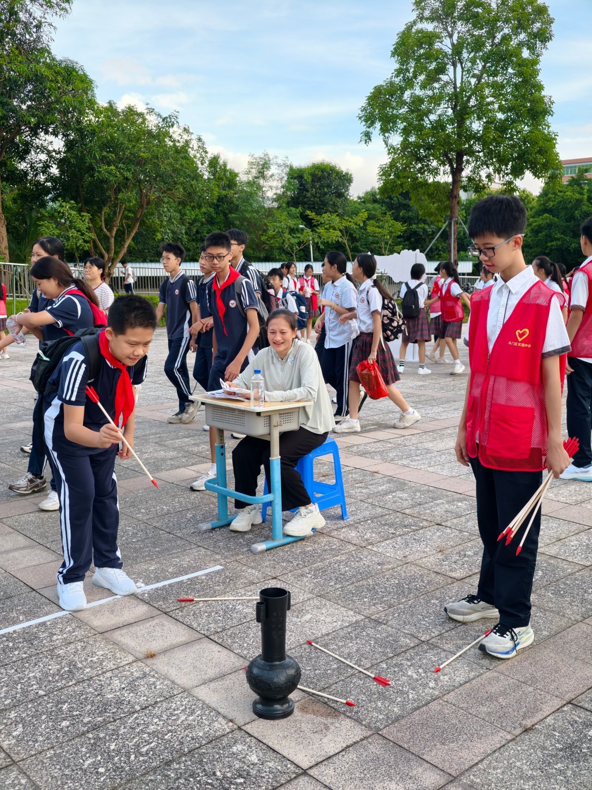 在斗门区实验中学,以“薪火相传赓续文脉·古韵今风沁润童心”为主题的传统文化体验活动,在学校正门小广场拉开帷幕,多项传统互动游戏吸引学生踊跃参与,开启一个充满文化韵味的新学期。