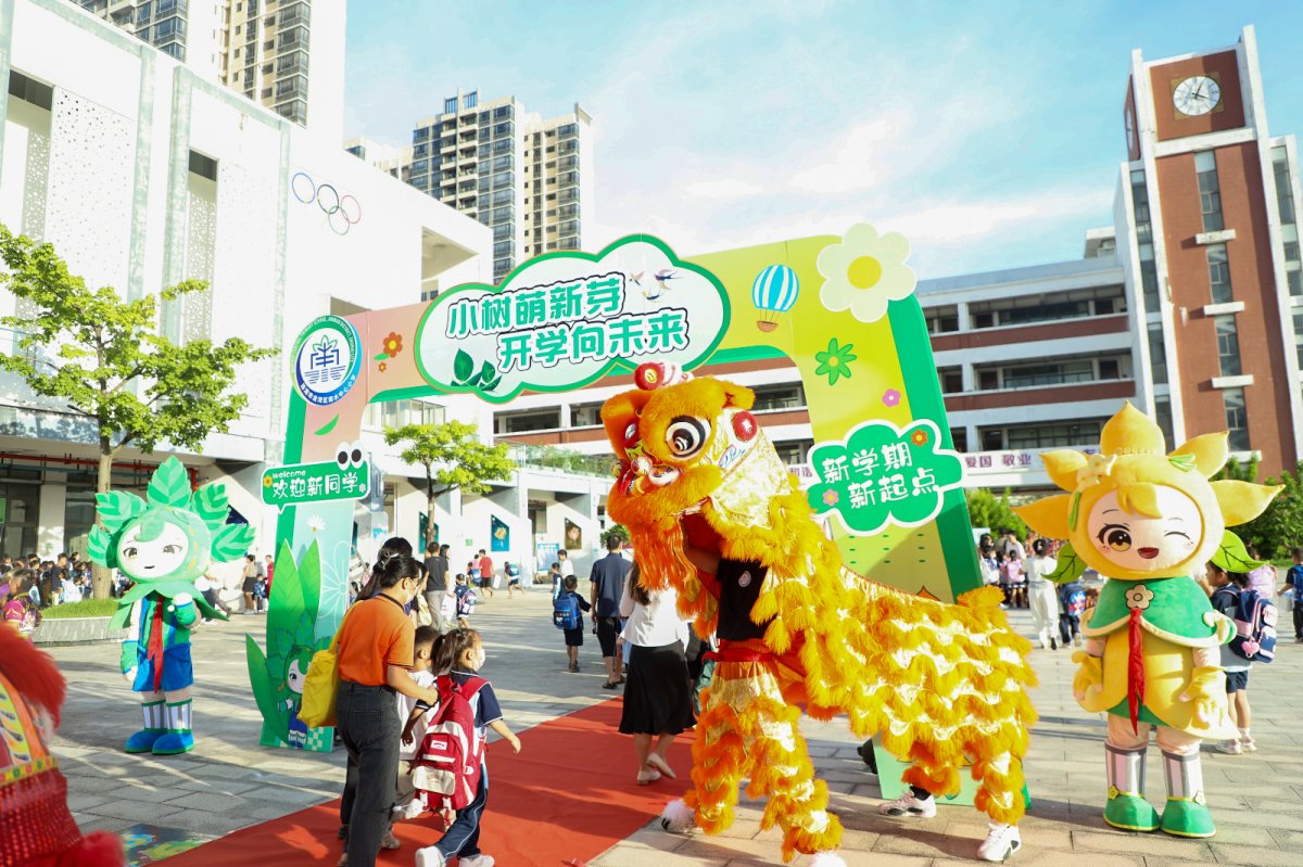 在金湾区南水中心小学,学童“变身”小小药匠,自己亲手碾碎药材制作的香囊,让孩子们爱不释手;在香洲区暨珠小学,人形机器人和机器狗的迎接让开学变得新奇有趣,小小机器狗还披上了醒狮外衣舞狮,引起阵阵惊叹;在斗门区齐正小学,看着同学飞花令接龙与精彩的古筝表演,现场学生忍不住鼓掌……