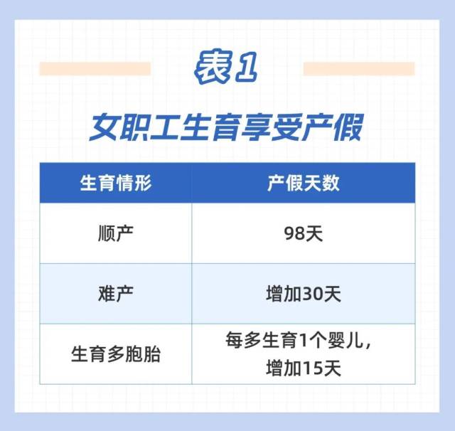 女职工享受生育津贴的假期天数,又是怎么定的呢?根据《广东省职工生育保险规定》,职工享受生育津贴的假期天数,按照下列规定计算,详见下面三张表格: