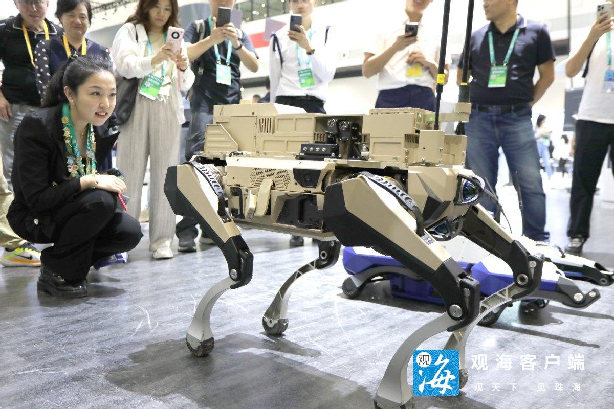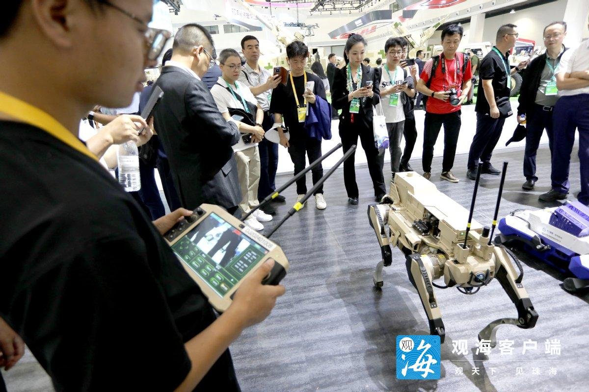 “机器狼”由四足机器狗加装武器或侦察设备构成,可远程操控、自主行动、灵活编组,实现陆上有人、无人协同作战。去年航展上,其动态展示就吸引了众多目光。