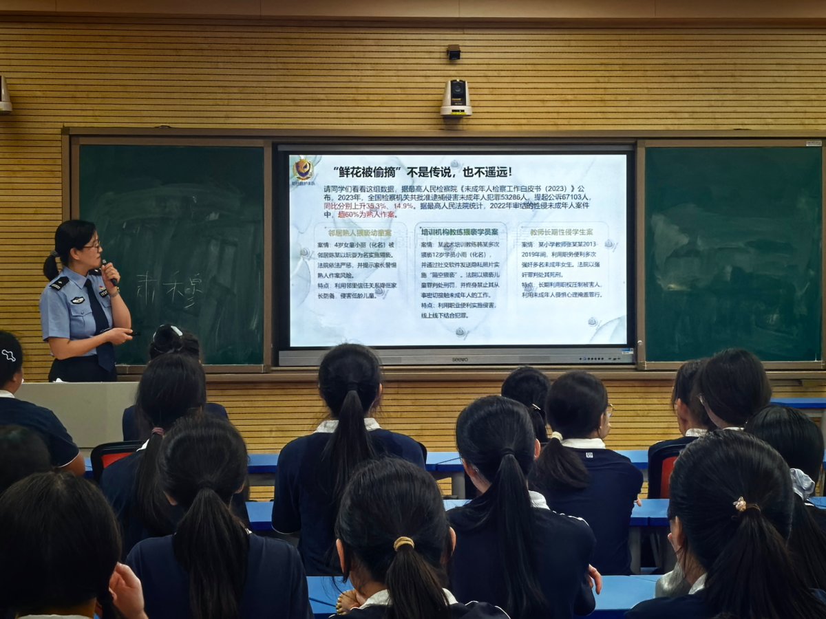 此次活动由珠海市公安局勒杜娟护未队宣讲员吴慧玲主讲,旨在通过科学、正向的宣传教育,提升中学生对安全认知水平,增强其识别危险、提升防范和应对能力,为青少年的青春旅程增添一份安全与自信。