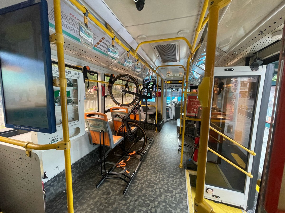 9月7日,记者实地体验1号线双向行程,携带公路自行车登上专门改造的公交车。进入车厢发现,配备了车辆固定装置,其与自行车接触部位采用软橡胶材质,能确保运输安全。同时,司机和工作人员主动协助固定车辆,提高了上下车效率。