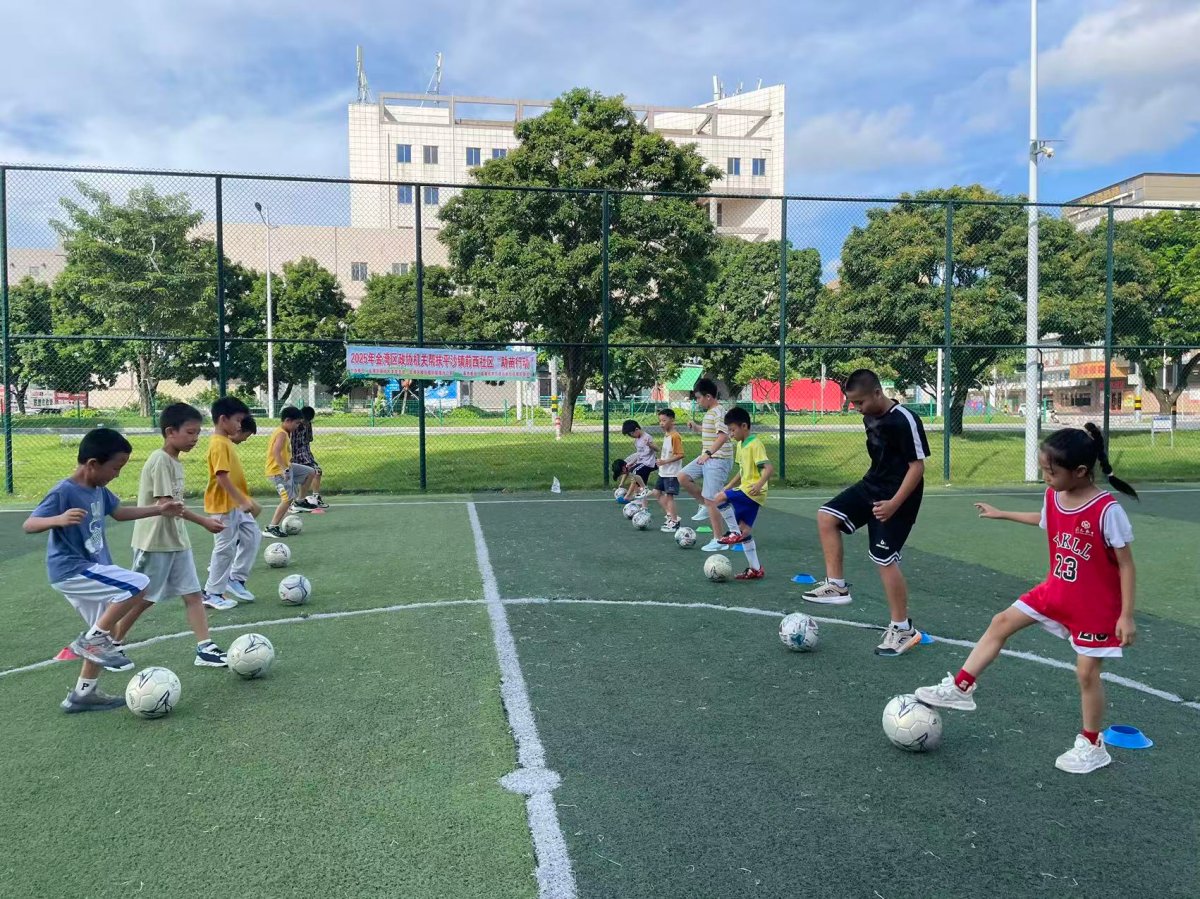 “传球!注意跑位!”在刚刚过去的8月里,珠海锐一健足球训练基地里呐喊与欢笑交织,期间在此火热开展的是“少年足球行 助苗伴成长”公益足球培训活动,是金湾区政协结对帮扶前西社区的重要实践。两期课程共为50名7-12岁社区少年提供免费足球教学,用运动活力为乡村青少年成长“赋能”。