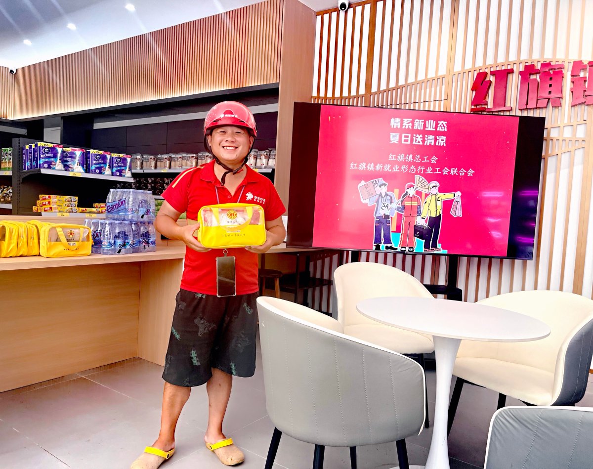 近日持续高温,又正值基孔肯雅热疫情防控关键时期,快递员、外卖员等新业态户外劳动者面临高温与防疫的双重挑战。为切实保障他们的身心健康,做好防暑降温工作,日前,在区、镇总工会的指导下,红旗镇新业态工联会(以下简称“红旗镇工联会”)组织开展了“高温送清凉,防疫护‘新’安”送清凉慰问活动,为坚守在高温一线的新就业形态劳动者送去健康关怀、权益保障及清凉物资,传递“娘家人”的温暖。