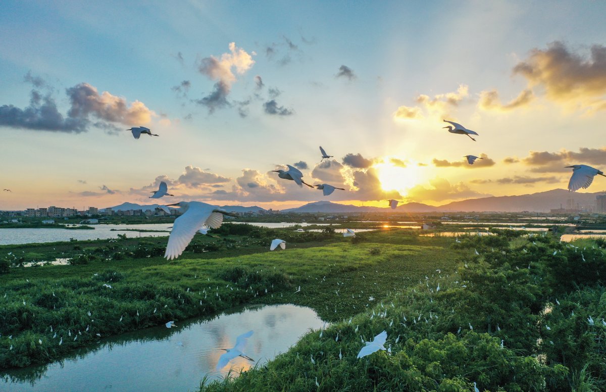 老糖厂摇身变为红旗1970艺术区,工业遗迹与现代创意碰撞出别样火花;鹭鸟天下湿地公园里,十万羽翼与在建的蝴蝶谷共谱生态乐章;沙脊村水上集市,乌篷船载着咸水歌穿梭于“创美庭院”之间;广发村田园综合体则让农事体验变身致富新路。