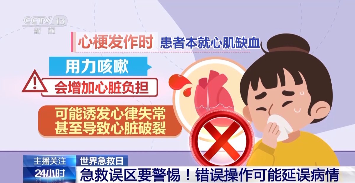 北京大学人民医院急诊内科副主任医师 郭维:心肌梗死最重要的问题是心脏的血管堵住了。用剧烈的咳嗽并不能帮助疏通血管,反而增加了我们的耗氧。实际上更加重了供氧和耗氧之间的不平衡,更加重病情了。