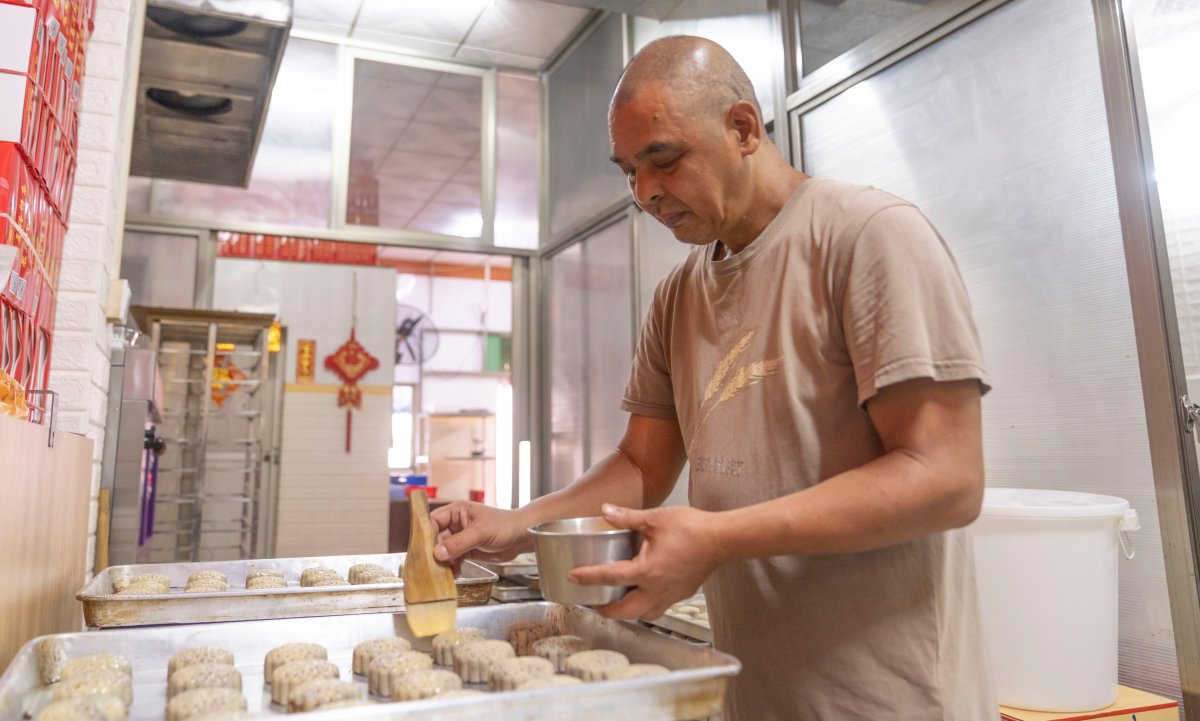 在南水镇中心城区这个不起眼的小院落里,老马仔饼店的马师傅正在忙着做月饼。他的作坊坚持传统工艺,从和面、熬馅、包制,全部手工完成。