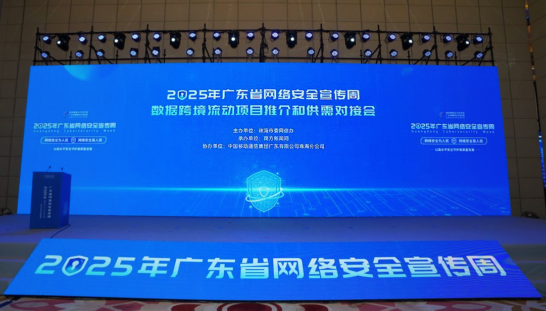 9月15日至21日,2025年广东省网络安全宣传周活动在珠海举行,聚焦网络安全技术项目和网信人才供需对接,并通过线上线下结合、多渠道发力的方式开展立体宣传,让网络安全理念深入人心。中国移动广东公司携一系列创新产品和解决方案精彩亮相,重点展示智盾新一代流量防护产品、5G泛在网信安全机器人、智慧反诈平台、移动安全管家、超大规模个人信息全链式安全防护信创平台等五大核心产品与服务,与众多行业领军企业共探网信安全的前沿技术与发展趋势。中国移动通信集团广东有限公司珠海分公司协办数据跨境专题项目推介与供需对接会。