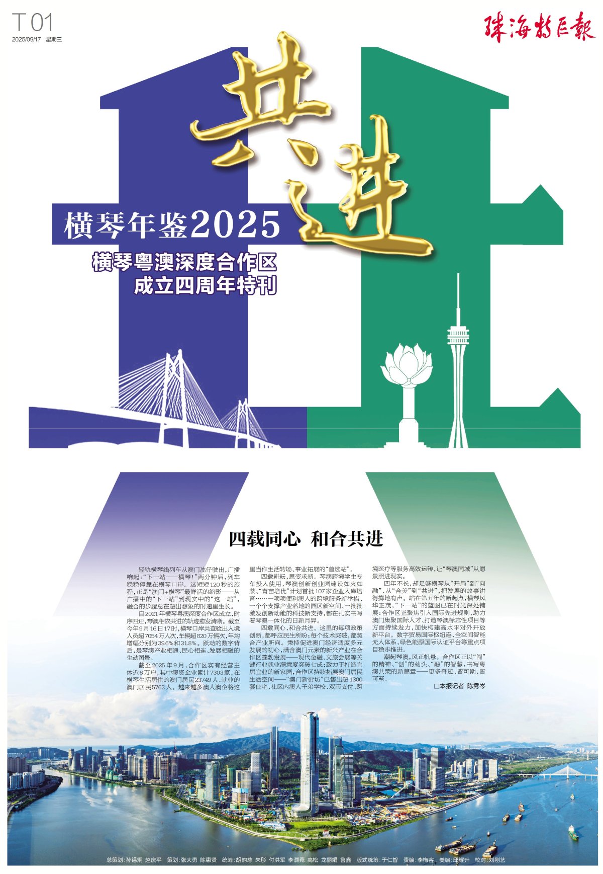 四载同心,和合共进。这里的每项政策创新,都呼应民生所盼;每个技术突破,都契合产业所向。秉持促进澳门经济适度多元发展的初心,满含澳门元素的新兴产业在合作区蓬勃发展——现代金融、文旅会展等关键行业就业满意度突破七成;致力于打造宜居宜业的新家园,合作区持续拓展澳门居民生活空间——“澳门新街坊”已售出超1300套住宅,社区内澳人子弟学校、双币支付、跨境医疗等服务高效运转,让“琴澳同城”从愿景照进现实。