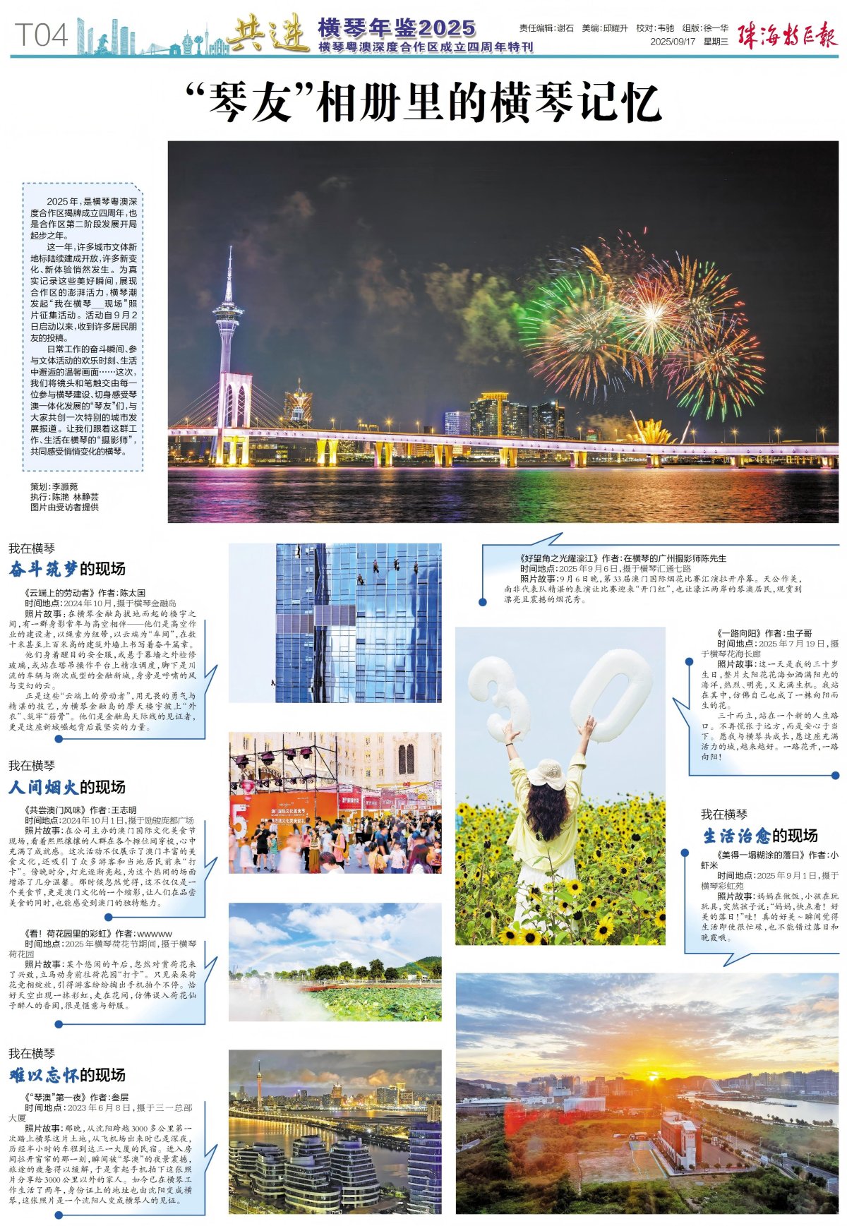 日常工作的奋斗瞬间、参与文体活动的欢乐时刻、生活中邂逅的温馨画面……这次,我们将镜头和笔触交由每一位参与横琴建设、切身感受琴澳一体化发展的“琴友”们,与大家共创一次特别的城市发展报道。让我们跟着这群工作、生活在横琴的“摄影师”,共同感受悄悄变化的横琴。