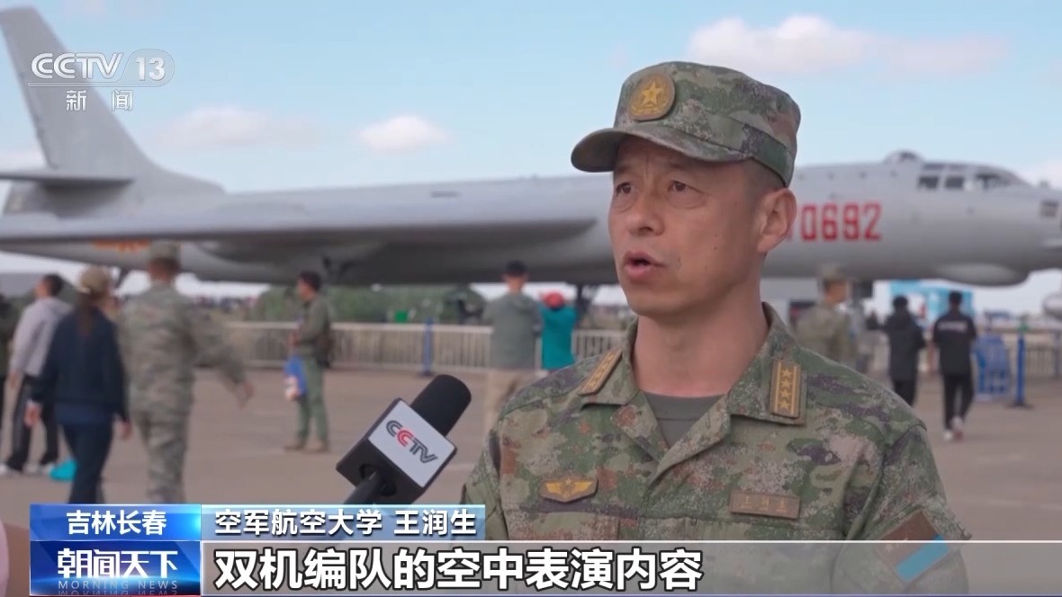 空军航空大学 王润生:今年我们增加了空警-500和轰-6双机编队的空中表演内容,歼-20地面静态展示首次参加。通过16日的预演,我们全面检验了组织、训练、保障、安全以及秩序等综合流程。