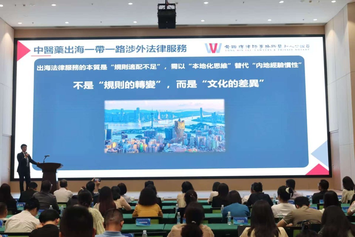 在企业出海法律服务专题分享环节中,北京天驰君泰(珠海)律师事务所律师黄诚思、陈彦亘向现场企业介绍了“港股ipo一线通法律服务项目”,为企业境外融资发展壮大提供法律服务方案。珠海市律师协会“一带一路”及粤港澳大湾区法律工作委员会主任黄景禧分享了“中医药出海‘一带一路’涉外法律服务项目”,为中医药企业在国际化进程中提供法律合规与风险应对策略。