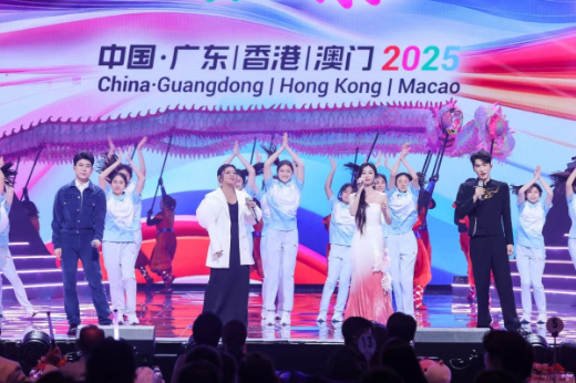 节目通过现代舞与传统民乐交融的形式,重新演绎经典粤曲《彩云追月》。舞台上,光束勾勒出烽火岁月的剪影,舞蹈演员以柔韧而有力的动作象征民族坚韧,背景屏同步呈现历史影像与和平年代的对比画面。节目尾声,夜空绽放的电子烟花与“1945-2025”字样点亮天际,引发现场持久掌声。